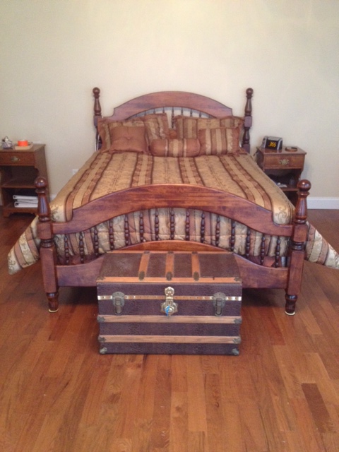 Mr. Chris Kennell of Tennessee was not disappointed when we delivered his family's new Brentwood Bed in solid maple. The Kennells got a traditional bed without drawers, emphasizing the turned and carved feet to complement the bed's many spindles. Michael's Cherry stain adds drama to the Kennells' bedroom.