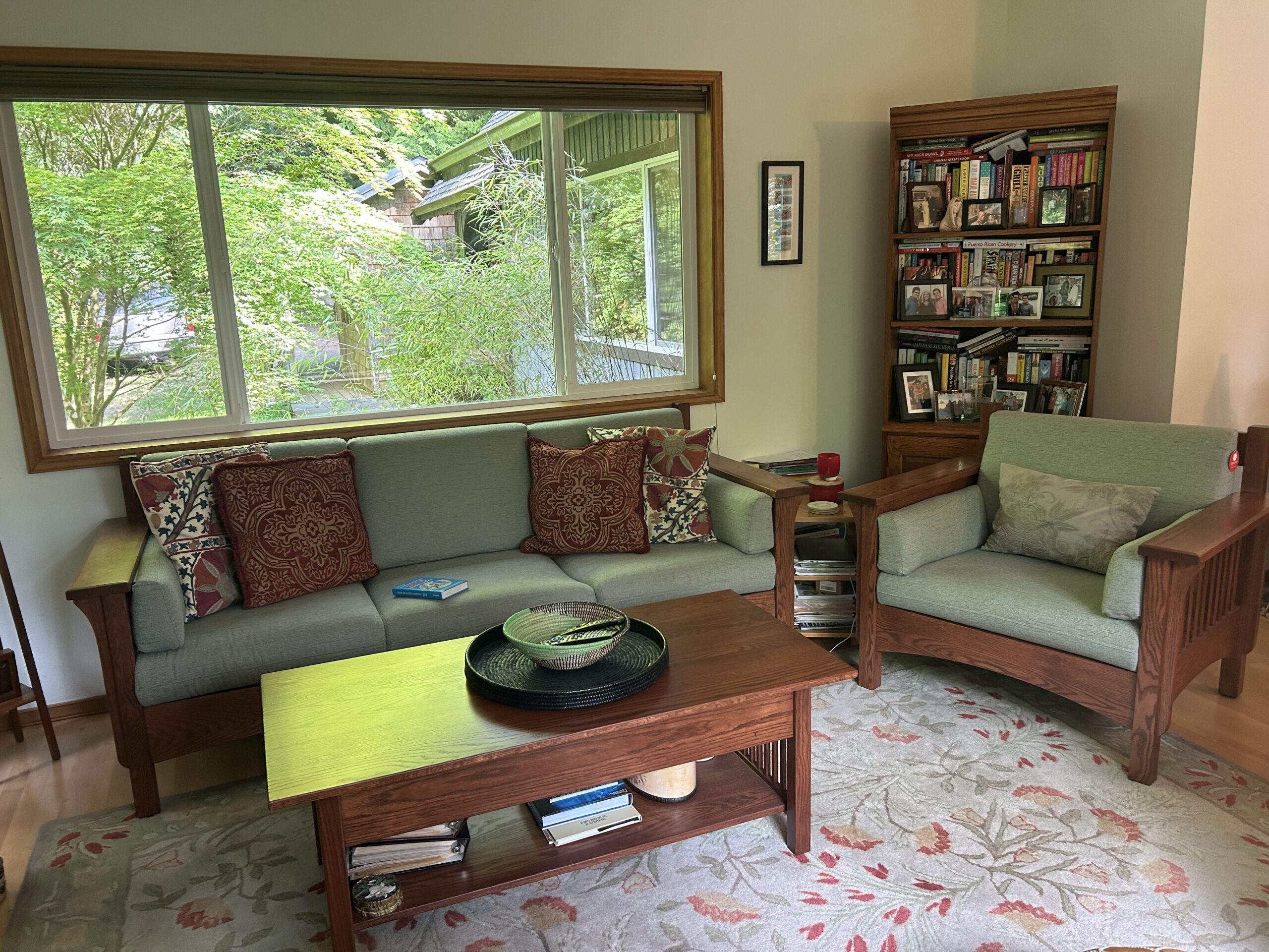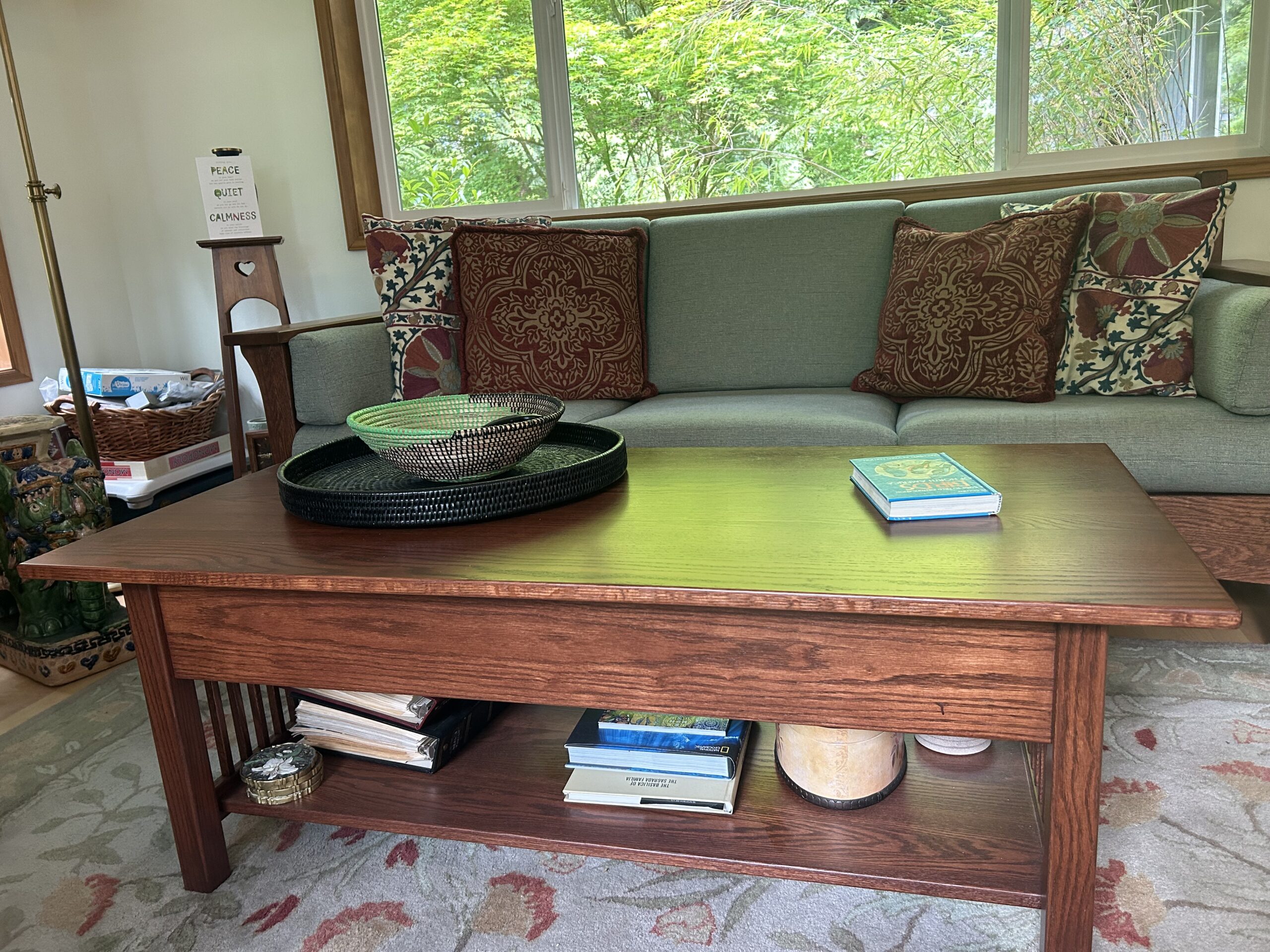 The living room establishes the mood of your house and serves as the focal point around which the rest of your home's furnishings are arranged. Your style is reflected in the sofa's design and the items around it. Sofas can be expensive but top-quality furniture is intense and composed of materials that will last many years, giving you years of use. They also improve the house's theme and appearance. You just have to make the best decision to get your money's worth ... and you can never go wrong with Amish Furniture Factory's living room pieces. Just like Debbie who ordered Pioneer Chair built in oak with OCS-107 Washington stain and C8-5 Mineral upholstery.