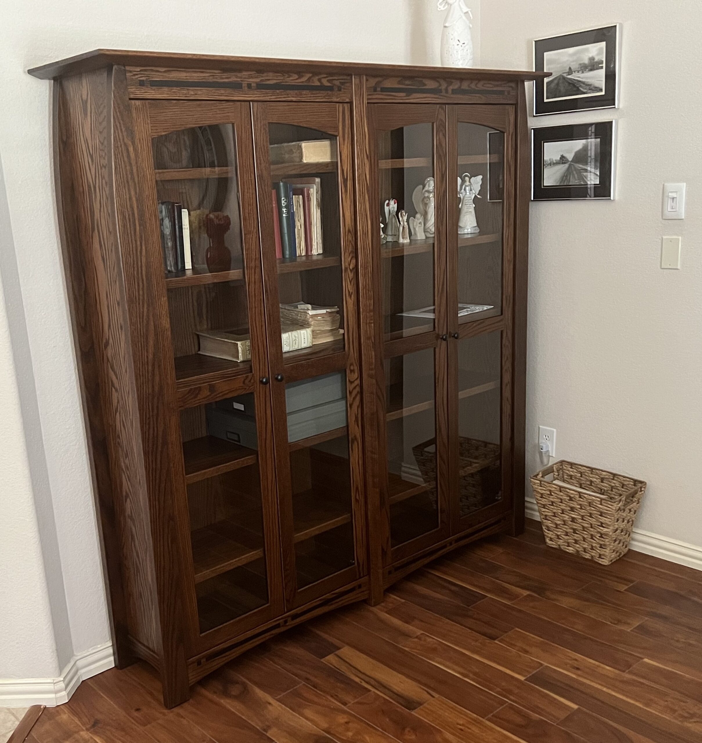We looked at numerous manufacturers and furniture stores to find a unit to fit a particular space in our home. Nothing seemed to meet our vision so we began looking at "custom" furniture makers and found the Amish Furniture Factory online. We found a style that we liked and after studying the options, selected the "Boulder Creek 6' Bookshelf." The unit comes with 10 shelves and we added glass front doors, custom decorative inlays, and custom stain. The time to build was lengthy but in line with all the custom manufacturers we contacted.