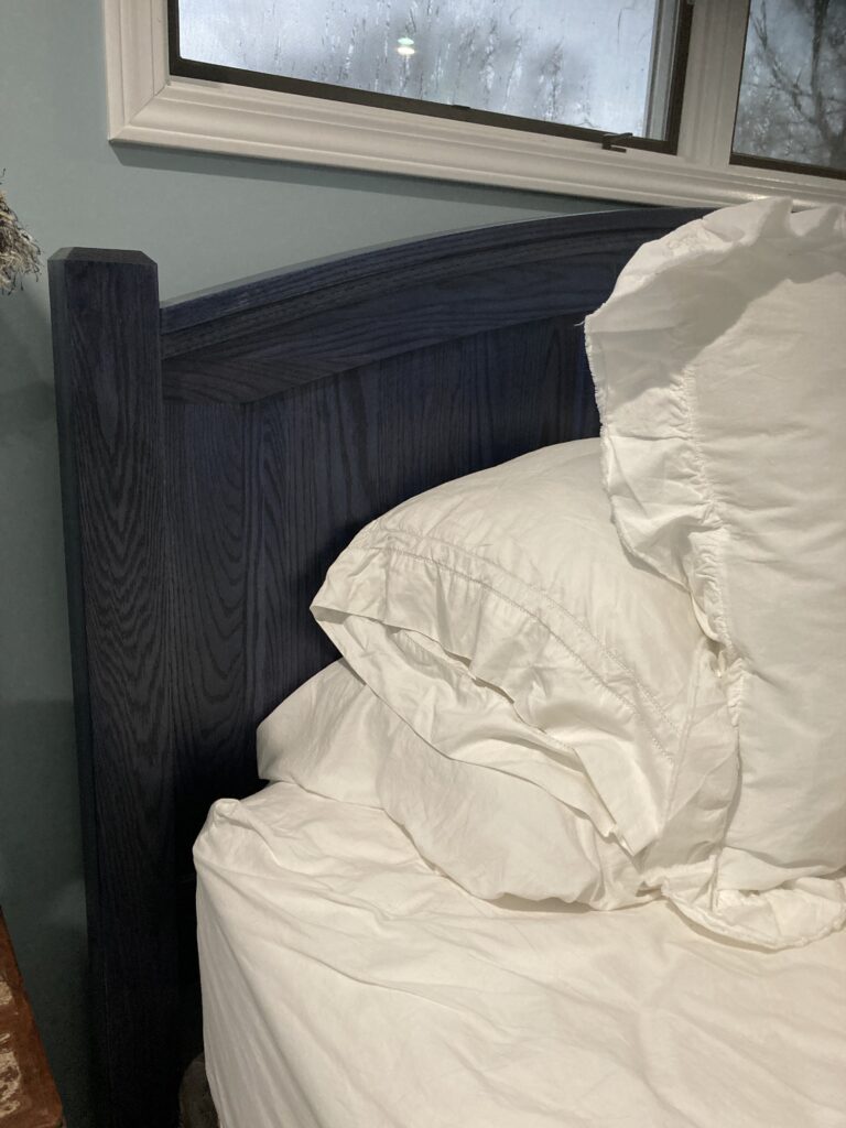 Choosing a new bed frame is something secondary to others but it can be just as important as getting the right mattress when it comes to the quality of your sleep. The perfect size of bed for your bedroom size, the support it provides, the height for convenience, and the materials it is made up of. Vonnie ordered king size Finland Bed in oak with FC-47869 Indigo stain.