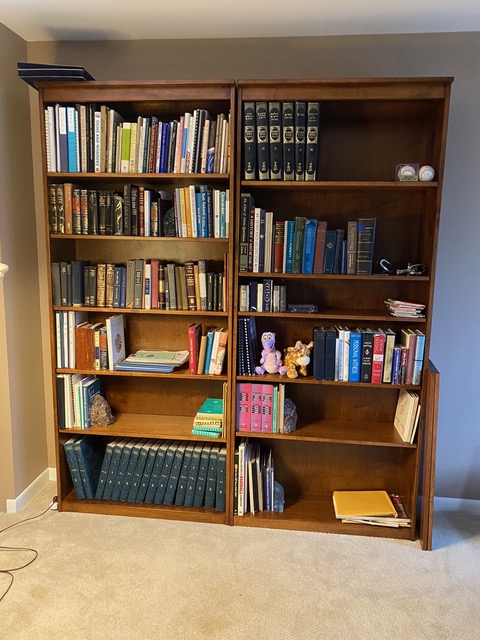 I have a large collection of books of various sizes. They had been housed for over 40 years on beautiful built-in shelves in my study. Then we retired, we sold our home along with my study and the problem was what to do with my books. Even after weeks of culling to decrease the sheer number, there were still some 20 boxes of books of all sizes and weights. We were moving to a much smaller condo, and I was planning to make one of the bedrooms into a study. I needed very well-built, sturdy, and adjustable bookshelves. So I began a fairly extensive search both in person and online. Most of the shelves that I found were either not fully adjustable or would not hold the weight of my books. I finally "stumbled" onto the Amish Furniture Factory website. After multiple phone calls and emails, it became evident that these bookshelves would work for me.
