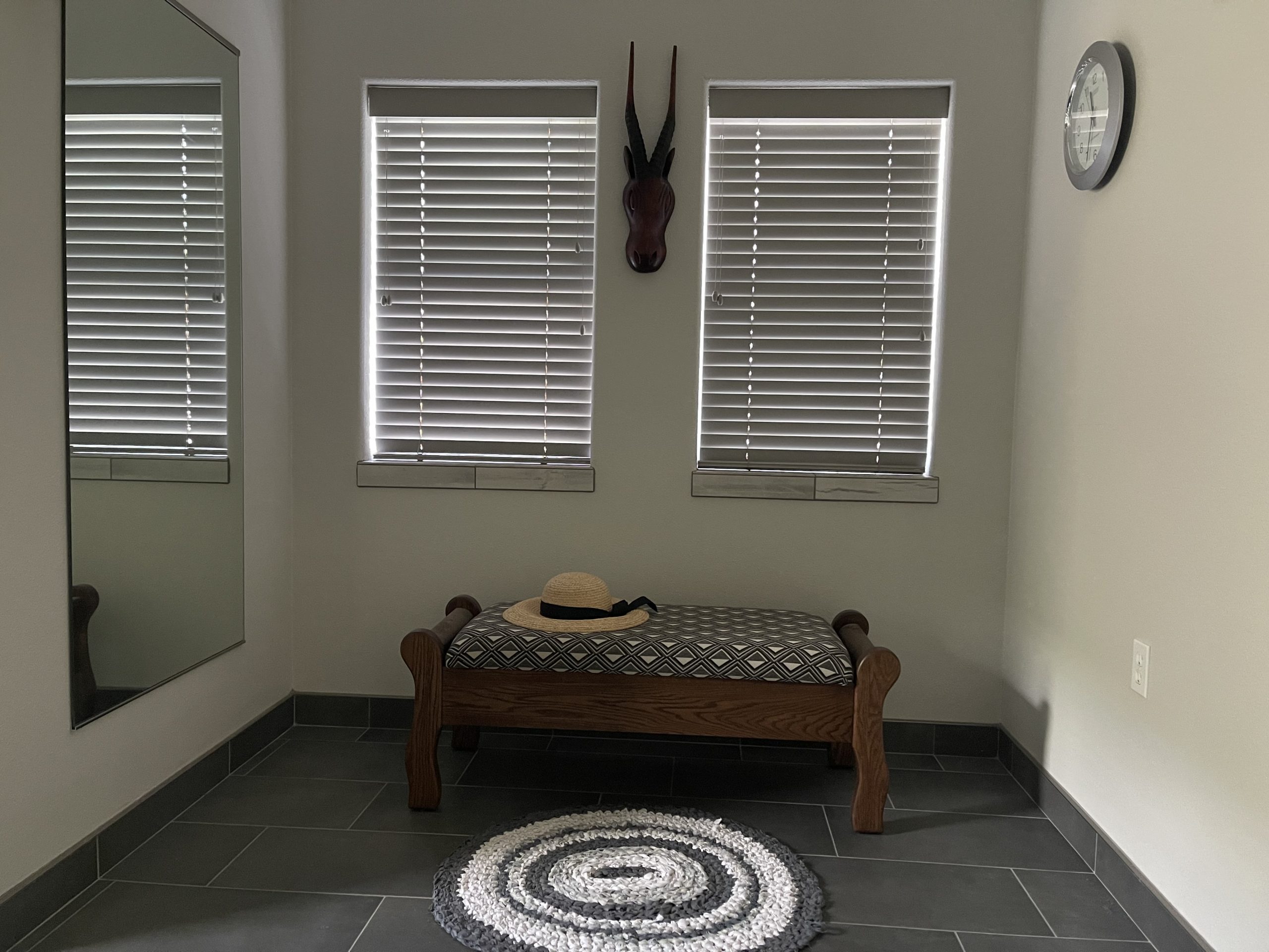 She ordered a sleigh bed seat, built-in oak and acorn stained to liven up her room. Here's what she shared with those who are still on the hunt for their wood pieces.