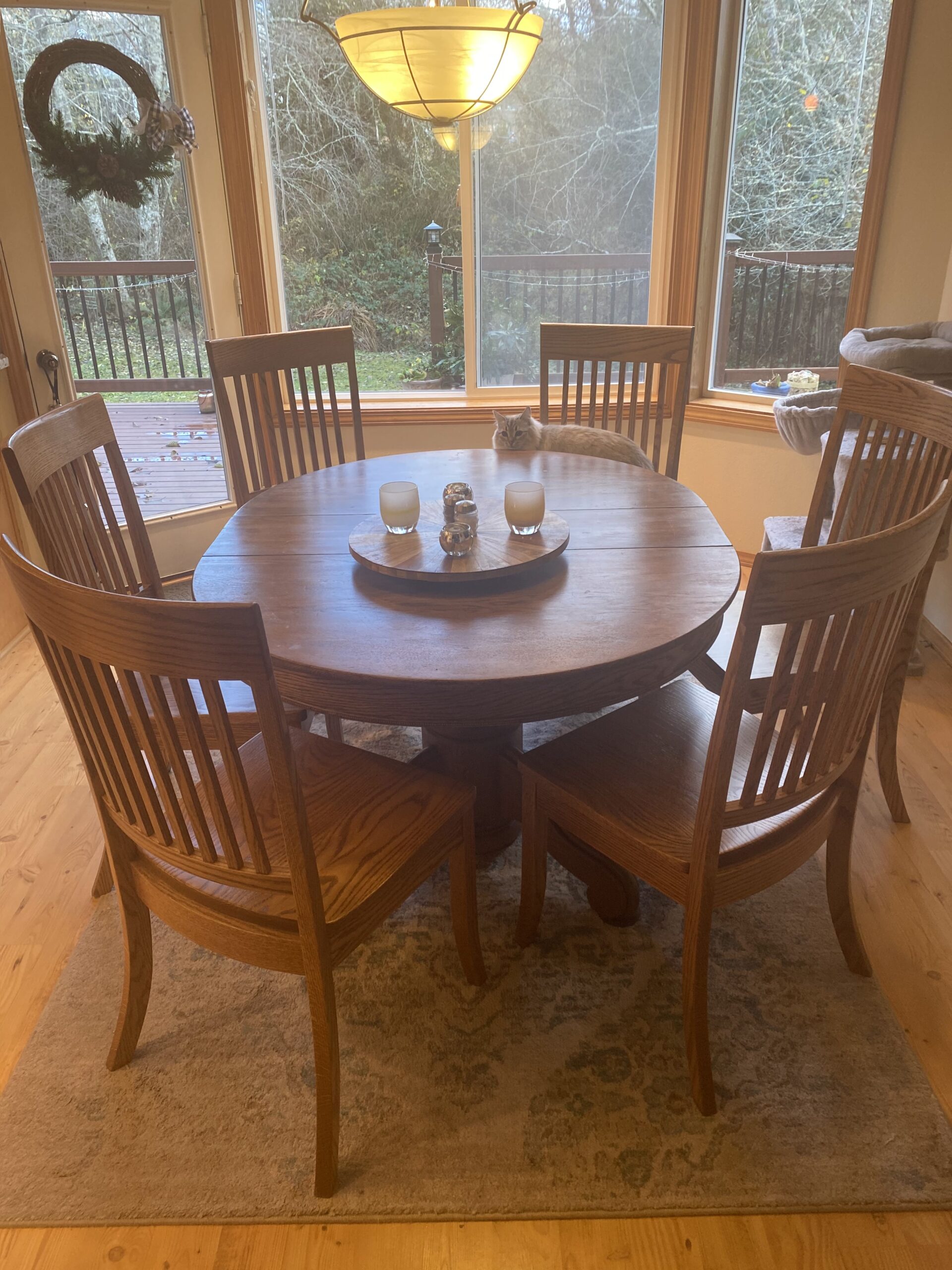 With a family growing through children getting married and having children of their own, we were looking for a dining table that would fit our needs which included not only providing a nice dining set for just my husband and myself but also for when our family comes to visit.