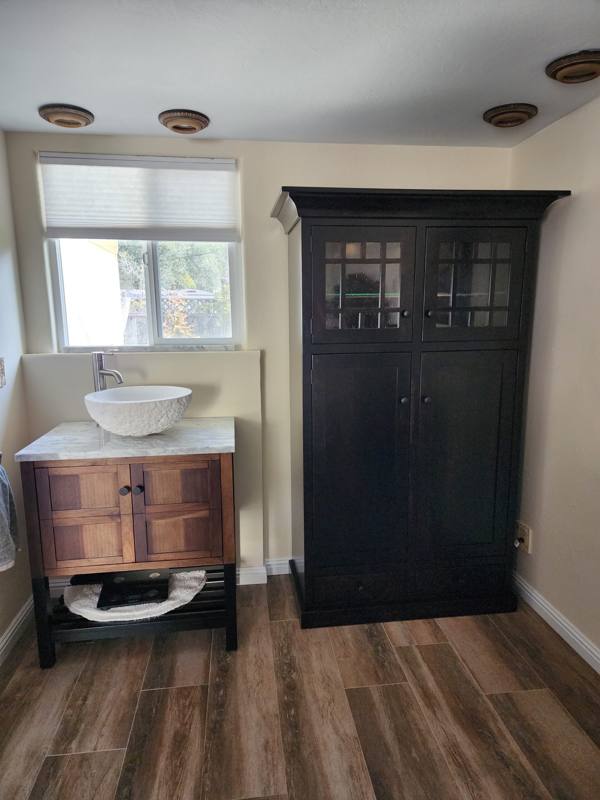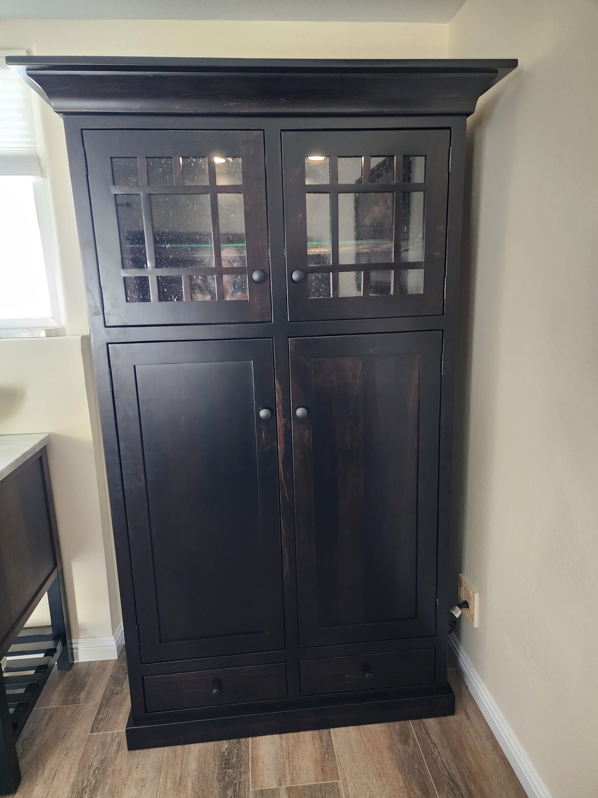 I received my Amish Furniture Factory cabinet recently. I absolutely love it and couldn't be happier. I had originally looked into getting custom cabinets made by a local cabinet maker for my bedroom/bathroom remodel. The quote was very expensive and I wasn't happy with how it went so I started searching for ready-made furniture. I wanted to buy furniture made in the USA if at all possible. Something told me to try Amish furniture because I had heard how well-made it is. I found Amish Furniture Factory on the internet and began searching their catalog. I found the Norwest Pantry which would fit very well in my space. I am actually using it in a clothes cabinet. I corresponded with Laura who was extremely knowledgeable and helpful. I was able to get a sample of the Ebony black stain on brown maple which Laura recommended. It has just a bit of wood grain which shows thru and I like the way it looks very much. It is so sturdy and well-made. All the doors and drawers open and close perfectly. It has touch lights at the top which is a nice feature. I was able to take advantage of the customization options for shelves and drawers, knobs, glass, etc. It was ready and delivered in the time frame I was told. It was all very well organized and communication was clear all along. The white glove delivery was very reasonable and well done. The delivery people were polite, and professional, and did a great job. I am extremely happy with my purchase and it was far less than custom cabinets would have been and has more features, plus hopefully, it will stay in my family for many generations. I highly recommend Amish Furniture Factory.