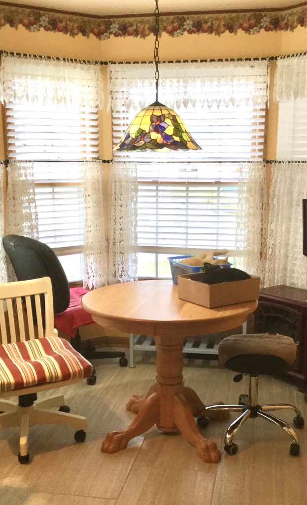 "The table was actually done like two weeks early. The delivery people were excellent. They put everything together and were super nice. Plus, after my table was delivered, I found heirloom tablecloths from mom that were packed away that fit the new tabletop perfectly!