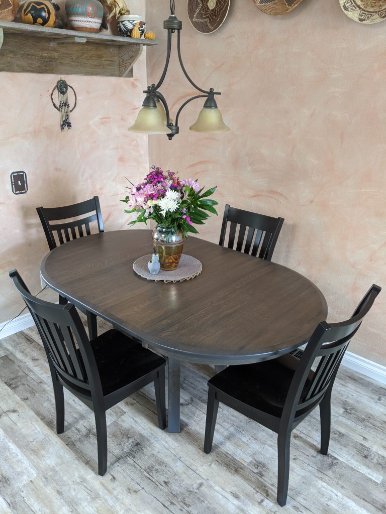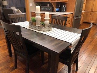 Good food on a good table makes mealtimes extraordinaire! This is what Bernice and her family feel every time they dine with their Laurie Leg Table. They had the Laurie built in hard maple with the Dark Knight stain. It was matched with Ventura Dining Side Chairs to complete the flawless rich wood look.