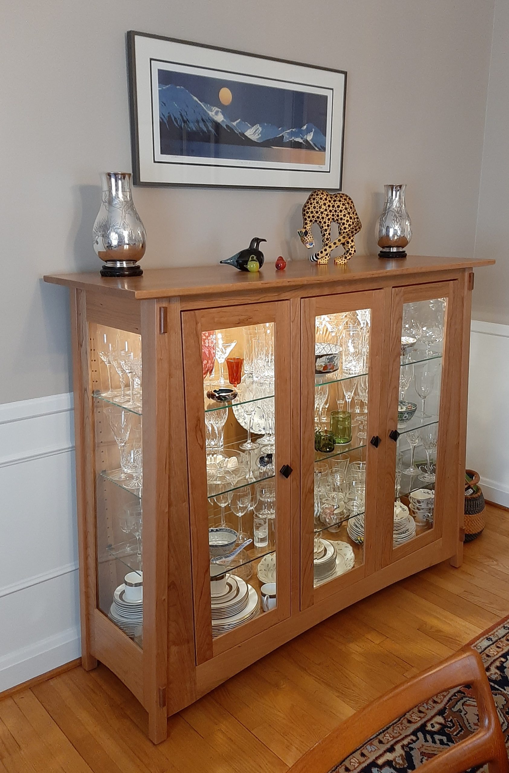 During the ordering process, Laura helped us to customize the standard McCoy design to suit our specific needs. The craftsmen eliminated unneeded drawers, expanded the glass, and added more shelves. Not only did they do a beautiful job with the modifications, but they executed them in a way that was faithful to feel of the original design!