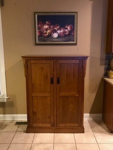 Broadway Mission 2-Door Pantry Cabinet in quarter sawn white oak with Michael's Cherry stain[/caption]
