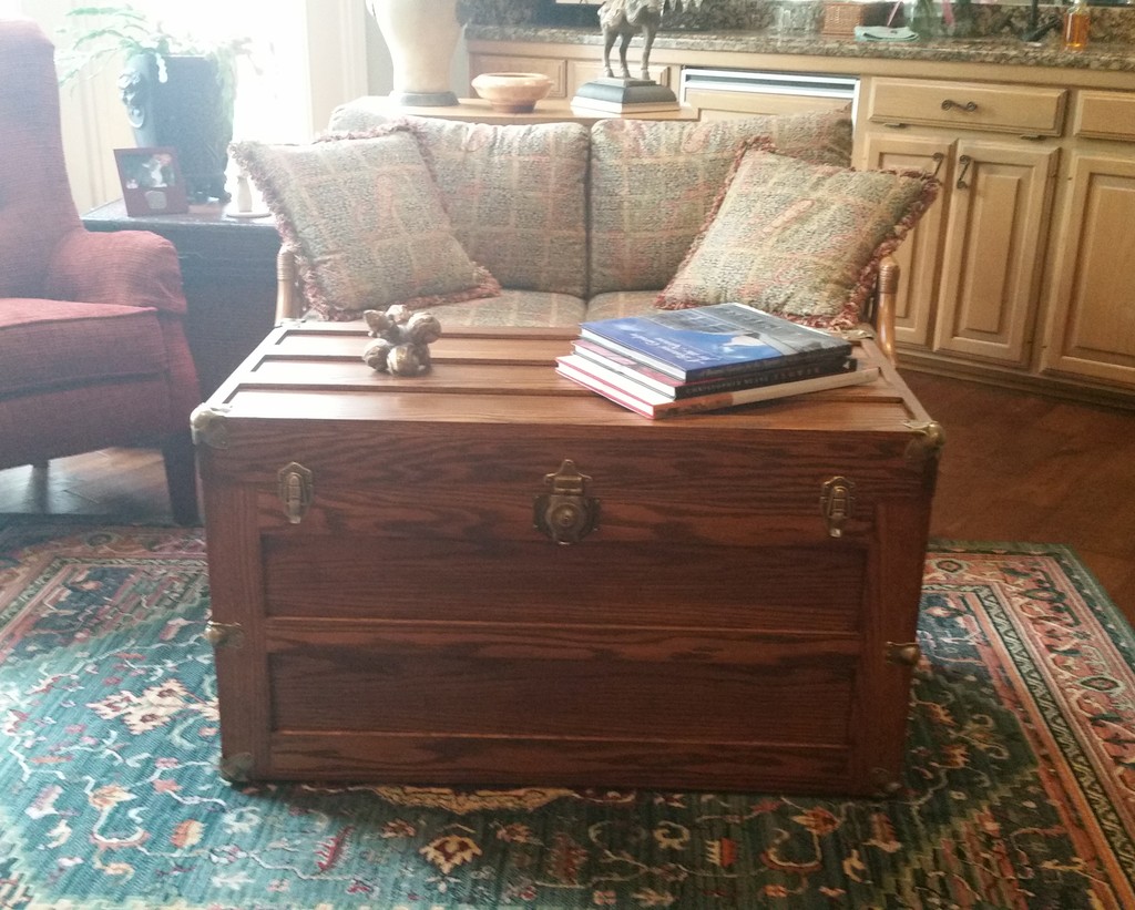 We love our new trunk. The workmanship is terrific and ordering wood samples helped us choose just the right color. Many thanks.