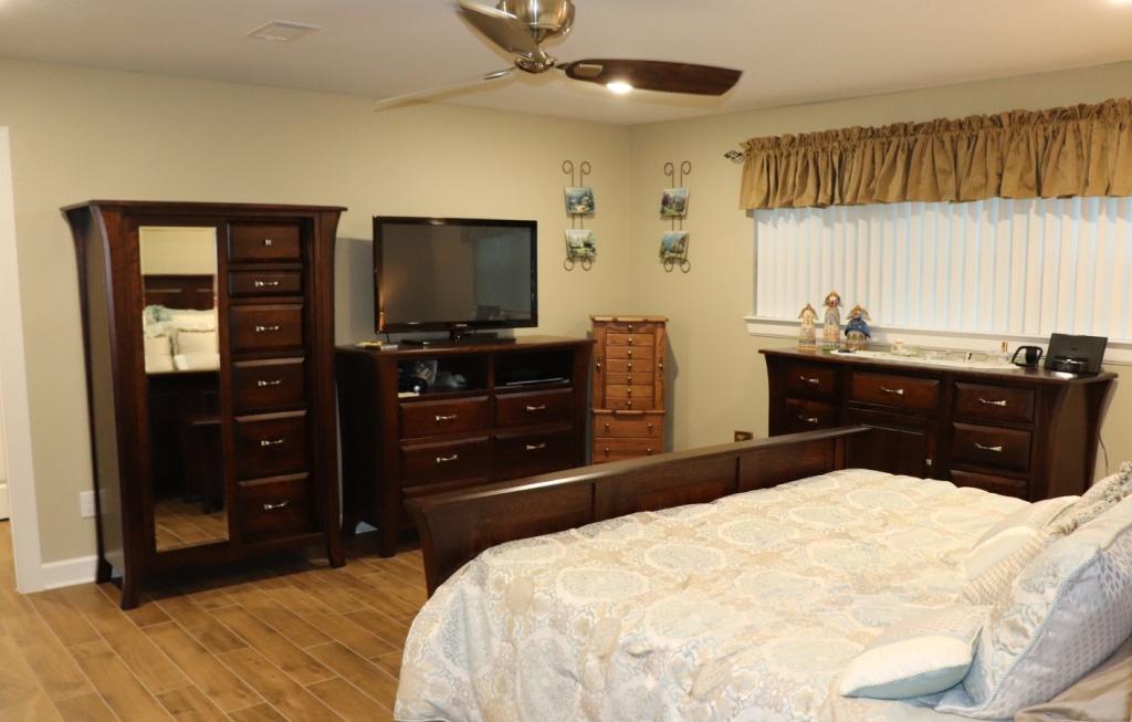In June of 2018, our home was finally complete enough to take delivery of our furniture. I called to let Laura know and she gave me details of my delivery. We first took delivery of our 3rd party furniture, and within a few days, our AFF furniture was delivered. As can be seen in the photos, the furniture was a perfect match! We couldn’t be happier with our Ensenada bedroom furniture. A big thanks goes out to Laura and the Amish Furniture Factory for helping make our recovery a pleasant experience.