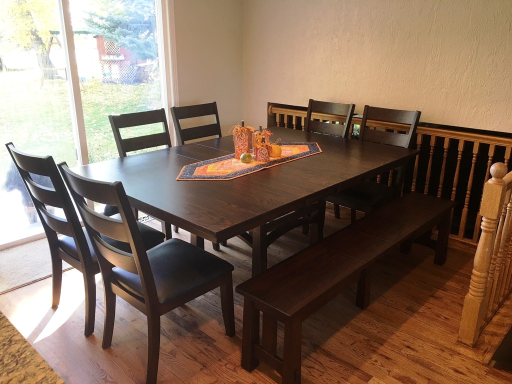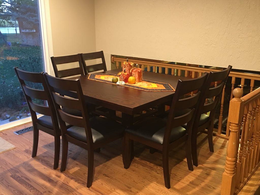 The Dilling Family is proud to own this beautiful dining table, chairs and bar stools. Working with the Amish Furniture Factory was easy, there was continued communication throughout the building process. The result is better than I could have imagined.