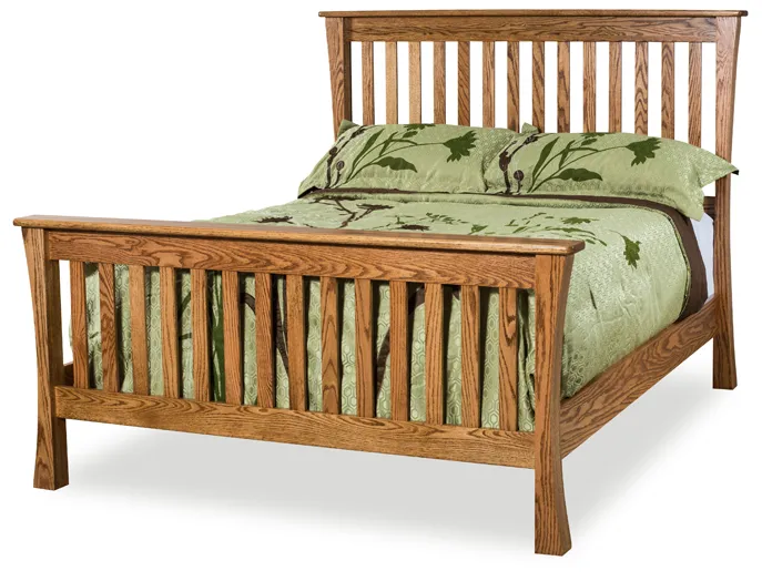With sloped legs and a headboard and footboard with slender slats, this trestle bed is simply stunning. In addition to its charming style, this bed is constructed out of solid oak wood with an Amish attention to detail.