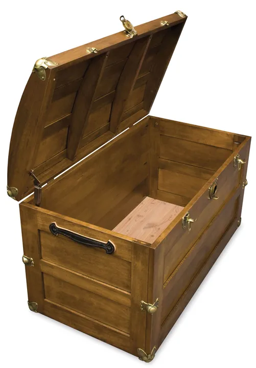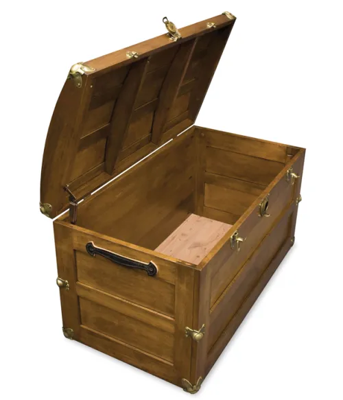 When you think of a chest, this one probably comes to mind. Children will think this chest is a pirate's chest and fall in love. The rounded top of this trunk helps it fit even more inside. The chest has in-laid panels, handles on the sides to move it easily and claps and a lock to keep it securely closed.