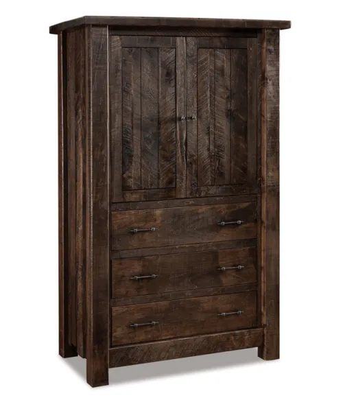 Pictured in rustic rough sawn brown maple with Almond stain.