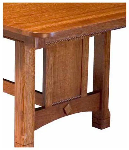 Pictured in 42" x 72" quarter sawn white oak with Michael's Cherry stain. Also rope twist