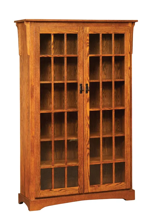 This bookcase is truly stylish and large enough to hold even the biggest of libraries. The glass doors open outward and have wooden panels running throughout. The clean Mission style is prevalent in the design of this bookcase which makes it popular in homes all across America. Other sizes of this bookcase are available.