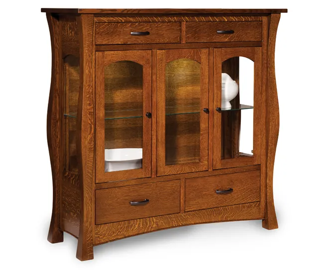 The overall design with the welcoming arcs and curves exudes a soothing and calming touch your friends and family would appreciate in a gathering. Amish York High Buffet radiates class and vibrance, that grabs the attention of everyone in the room. Display your precious dinner wares and other family heirloom behind its glass doors and sides.